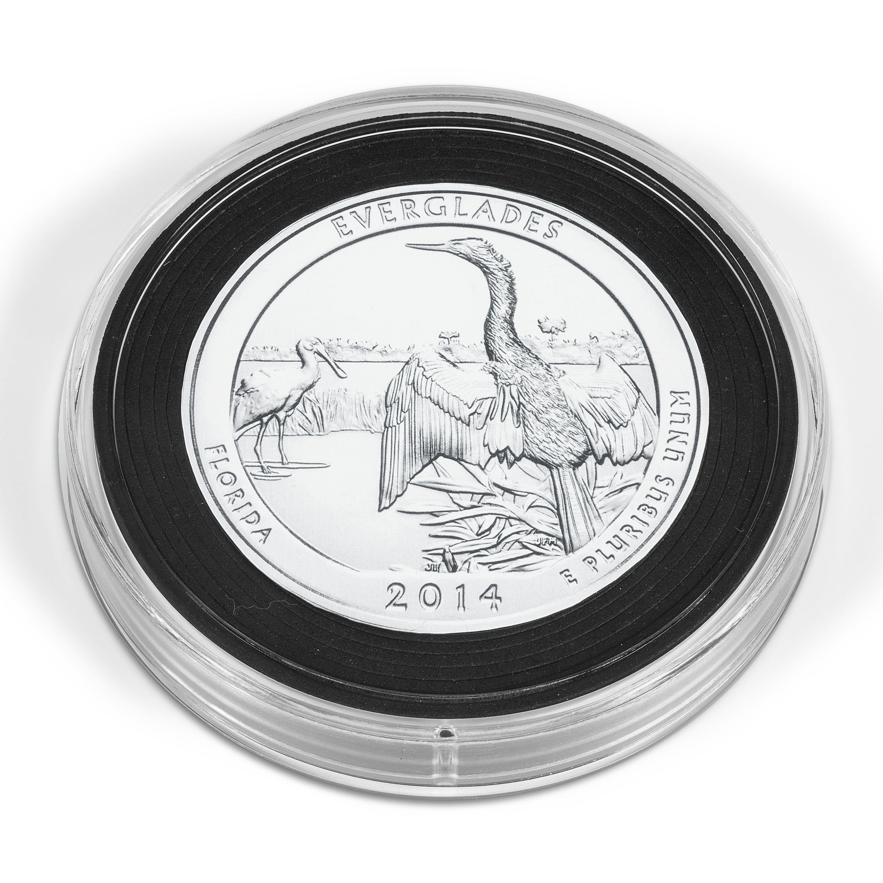 This XL coin capsule is ideal for storing very large coins or medallions. It comes with individually removable spacing rings made of chemically inert black foam (free from PVC, acid, and chemical softeners) which also allows smaller coins to fit perfectly into the capsule. It is secure locking, yet easy to open. The capsule is made from durable, crystal-clear and scratch-resistant plastic and makes a great replacement for scratched or defective original capsules.