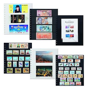 SF protective mounts are affixed in sizes which match the stamps. They are made from clear, anti-glare polystyrene film. They are free from chemical softener and are glued to the card of the albums. The protective mounts hold the stamps in place and prevent sticking. They also protect your collection from dust and moisture. The double linen hinge ensures optimal flat page position and a long life for your illustrated pages.