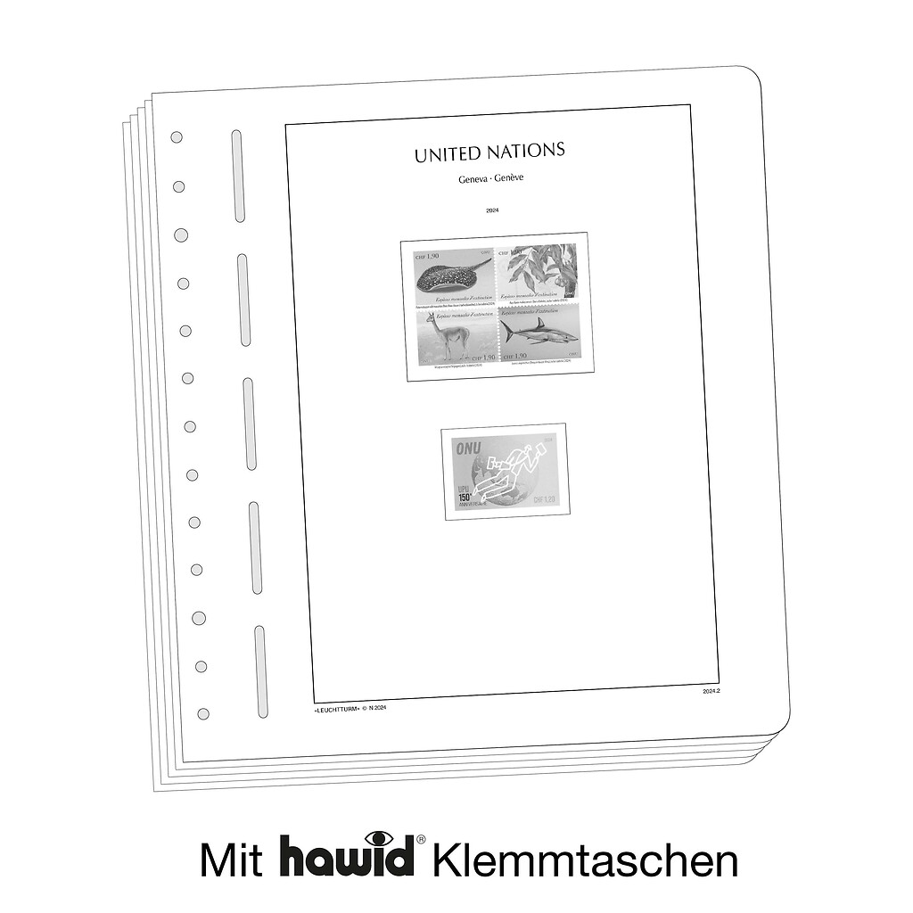 The individual characteristics of similar stamps which vary, e.g. in color, perforation or printing process, are noted on the respective album sheets. This only applies to stamps with Michel (major) numbers and includes the year where required. At all times we aim for a harmonious and aestetically pleasing presentation.