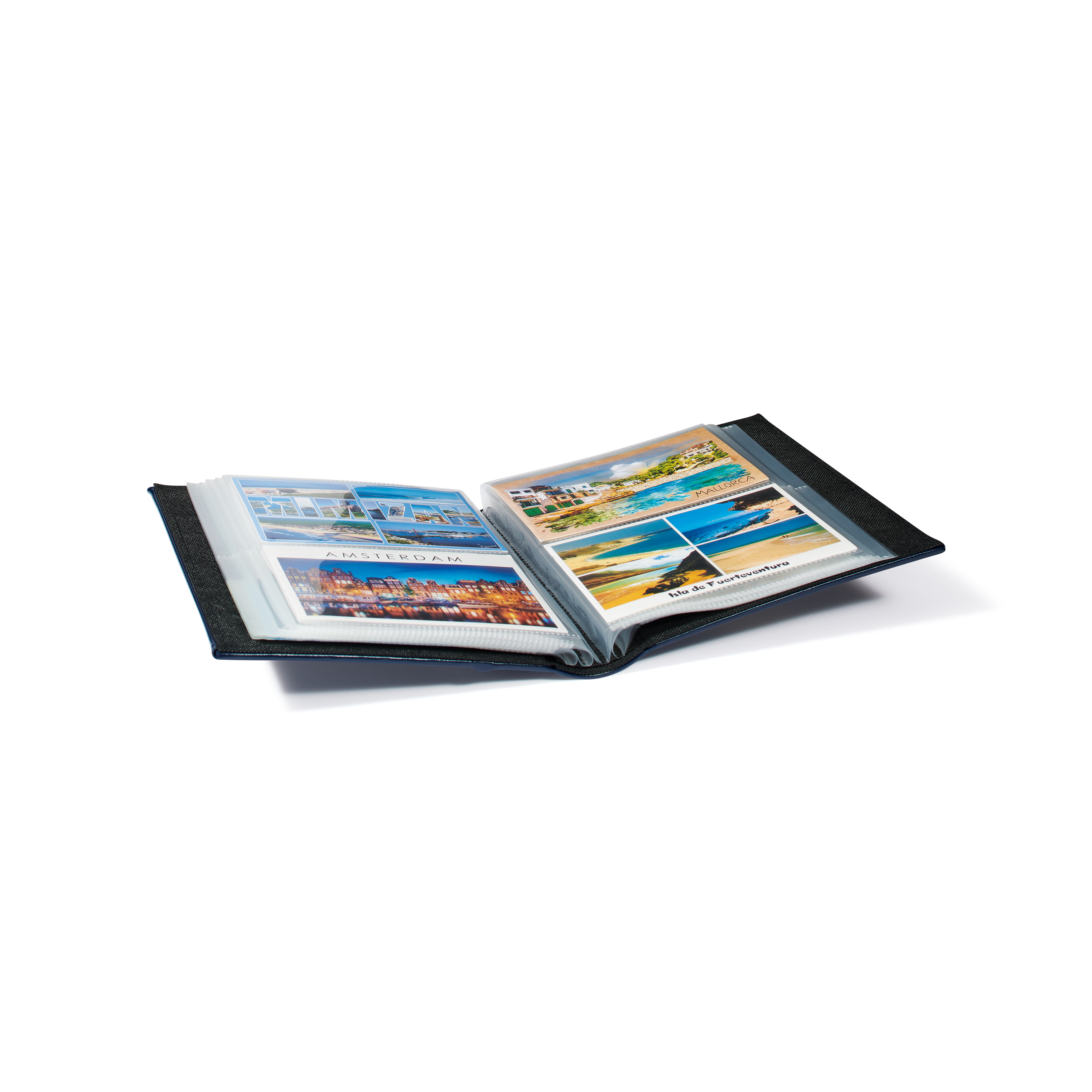 Postkarten-Album mit 50 klarsichtigen geteilten Hüllen für 100 Postkarten und Einsteckkarten PT6 (Hüllenformat: 105 x 148 mm), Außenformat: 190 x 240 mm. Folienmaterial: Polypropylen