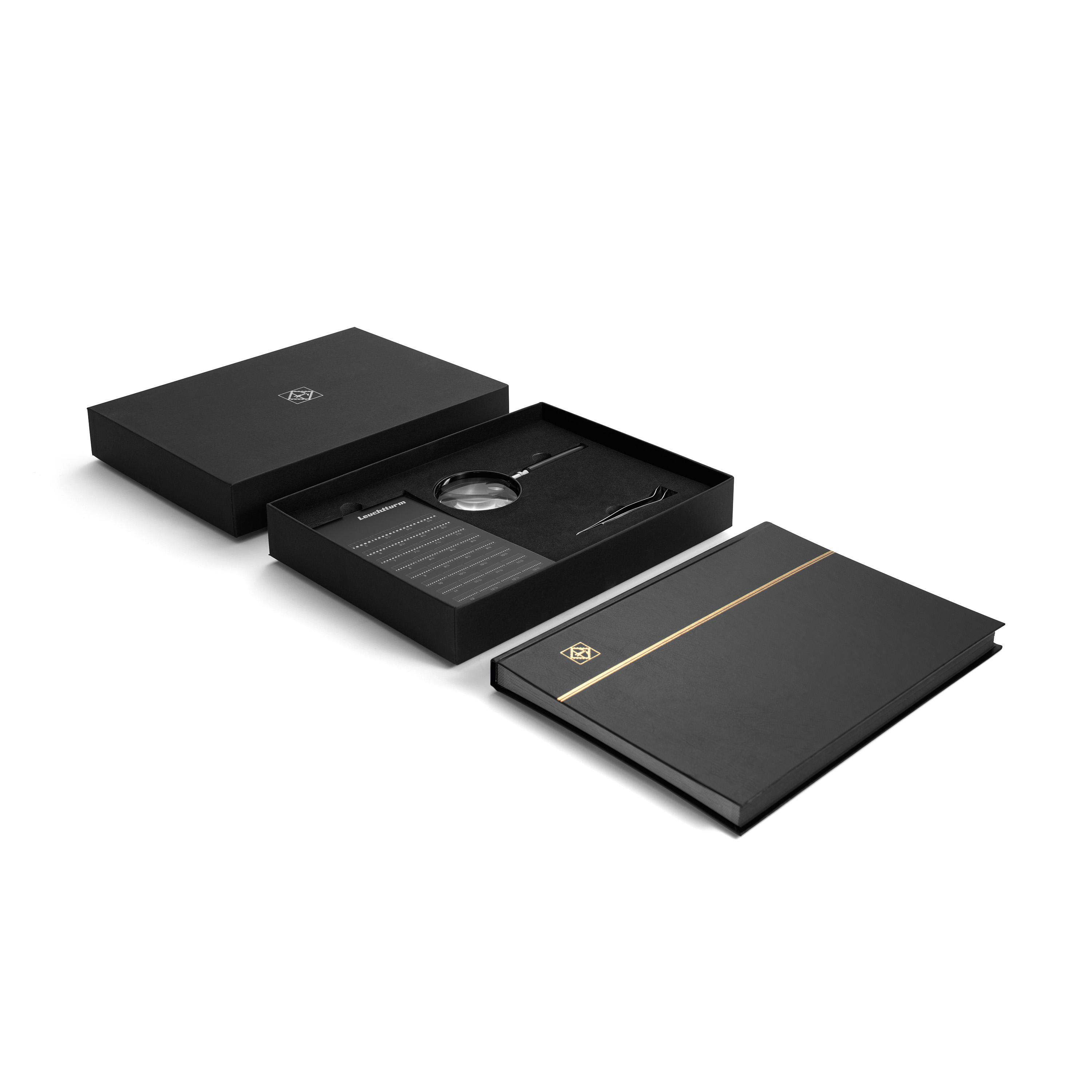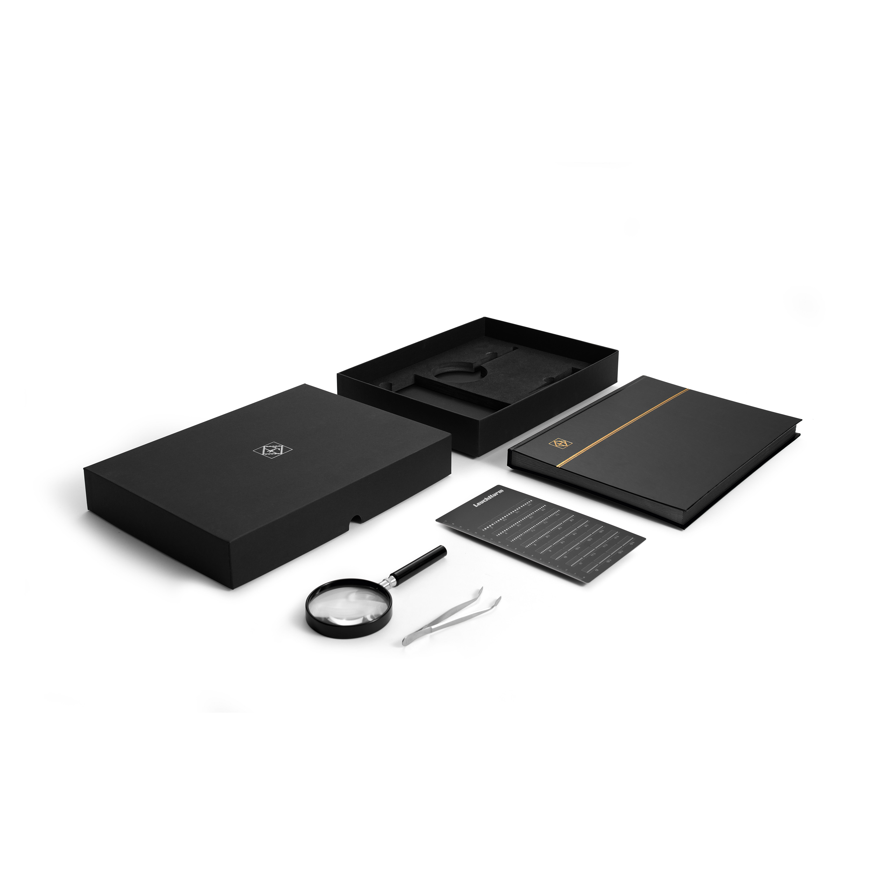 Discover the world of stamp collecting with our philately starter set, which offers everything you need to get started. The set contains a high-quality Basic stockbook in A4 format with 32 black pages, ideal for safely storing your first stamps. The Philadent perforation key enables precise determination of the perforation, while the PI 42 tweezers guarantee gentle handling of your collector's items. The set is rounded off by the LU 2 hand magnifier, which helps you to look closely at the fine details of your stamps. A perfect set for beginners to immerse themselves in the exciting world of philately.