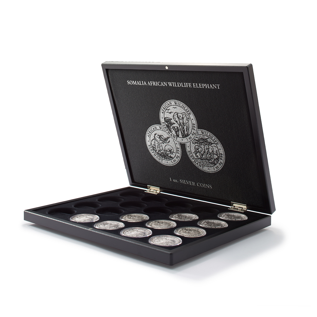 VOLTERRA UNO Display Coin Case for 20 Somalia Elephant 1 oz.Silver Coins in Capsules