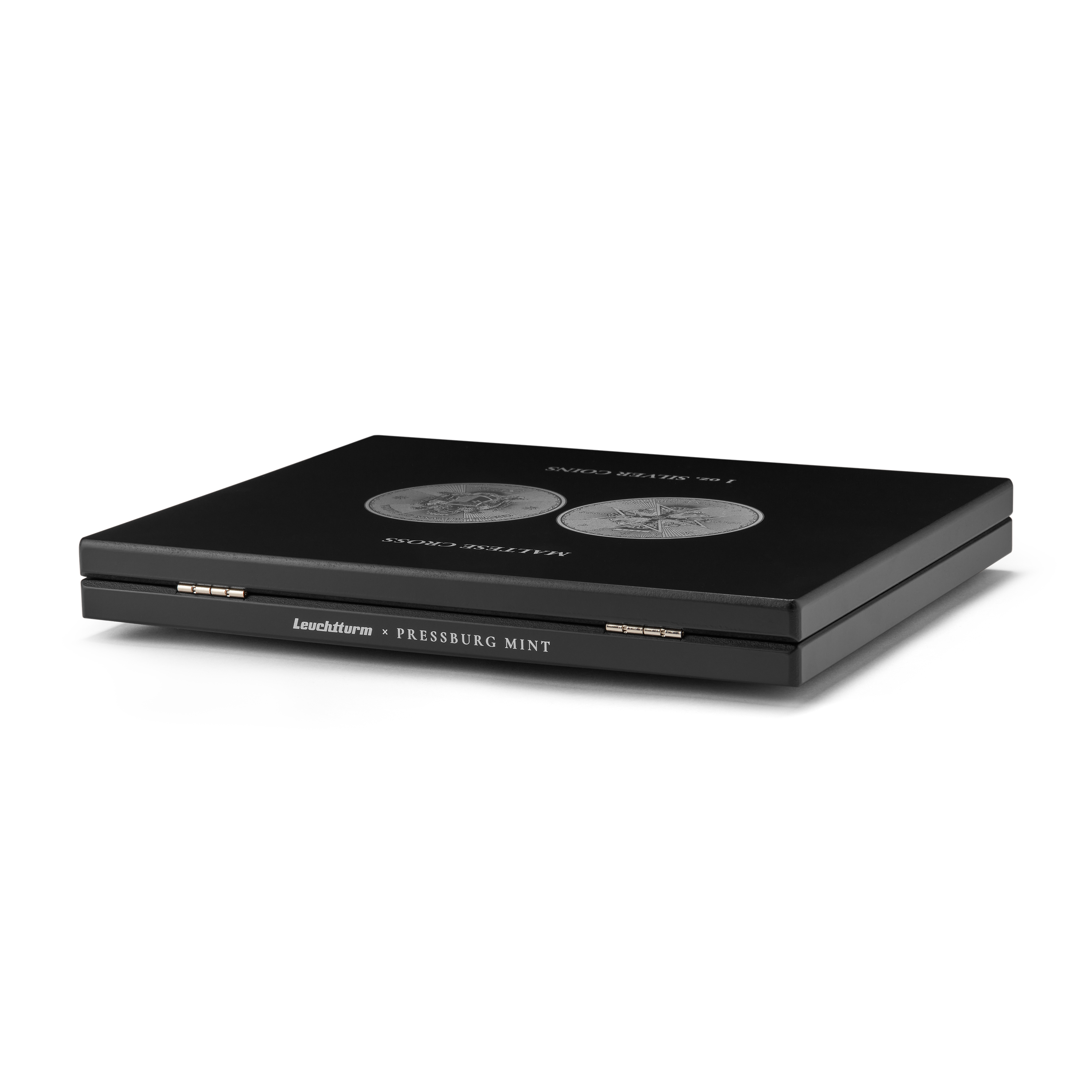The "Maltese Cross" silver coin series impresses with its unique design and the highly symbolic depiction of the Maltese cross, which has stood for courage, honour and tradition for centuries. This high-quality cassette is perfectly matched to the "Maltese Cross" coins and offers a secure and elegant storage solution. With a specially made inlay and an attractive exterior, it provides optimum protection for your valuable collector's items and presents them in style. Ideal for collectors who value a sophisticated and attractive presentation of their coins. This product was developed exclusively in co-operation with the Pressburg Mint.